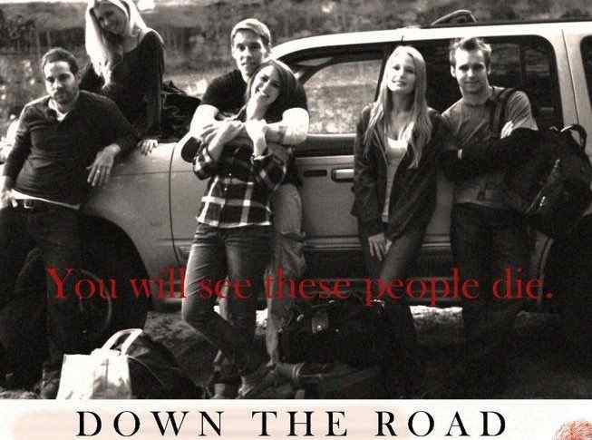 In Down The Road, “A father, Hunter Isth, is rocked by a tragic accident in his life. He fleets town and is no longer seen. Partying teenagers fall victim to a town lunatic. Through out the years the stories become urban legends and more than likely, myths. In present day we meet Jenn, a tough and beautiful girl, who has just been released from an extensive stay at the hospital. When her parents bring her home she barely has time to rest as her friends come over and drag her out camping for the weekend.”