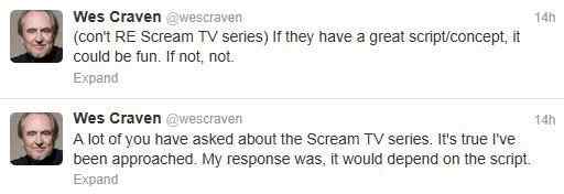 Last week it was announced that MTV and Dimension Films had teamed together to film the pilot for Scream: The Television Series. Going forward with a pilot doesn’t mean the series has been picked up; more-so it’s used as a way to show executives what the series has to offer – a sample, if you will. Many people were unhappy with the decision to stick with the MTV network, but apparently enough attention was garnered that Wes Craven took to his official Twitter last night to comment on the whole matter. His words echoed what he had previously said about Scream 4 and the potential new trilogy – it all depends on the script. Here’s what he had to say: