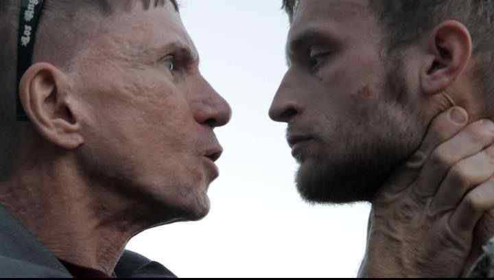 Clock Out is the latest film from director Brad Hodge and the story involves a desperate character, Toby. Toby, played by Joshua Mark Robinson, is in dire need of money, after his health deteriorates. He is drawn into a drug rip-off by his friend, Brian (Shaun Gerardo). Then, Toby gets involved in kidnapping and murder as seen in the still above. The local criminal elements come out of the bloody woodwork to seek revenge on Toby and Brian. And soon, Toby’s life is set to Clock Out earlier than expected.