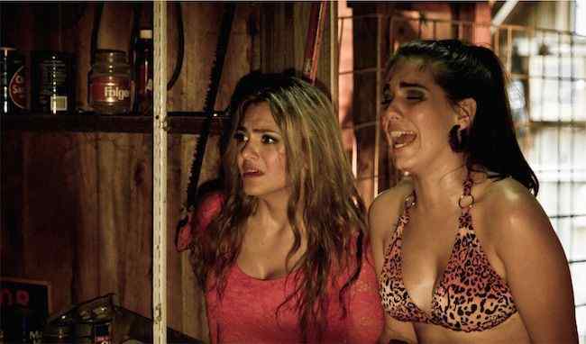 Next, I want to talk about the special effects. The special effects were created and administered by Cat Bernier (Cyrus, Girls Gone Dead) and Angie Elwell. There is a lot of blood in this movie. I mean, a lot of blood – shit is just splashing all over the fucking floor with every kill shot. I’m pretty sure production went with more practical effects than CGI creations and that gets a round of applause from me as well. The effects were professionally done, yet they reminded me of something you’d see in the Hatchet movies. Sort of hokey, but with a very classic horror slasher sense to them. It’s hard to describe, not perfect…but perfect for this movie. Also, I always pair up the gore and nudity so with that said… There is a lot of boobs in this movie. More boobs than blood. Lots of both. I don’t know how else to say it except: if you love tits and fake blood – Jersey Shore Massacre is the movie for you. And, ladies, there is a scene with Bret Azar wearing nothing but a banana hammock so there’s something in here for you, too!