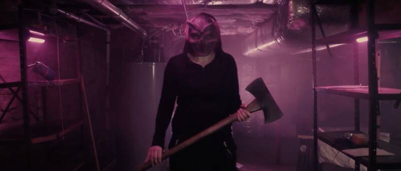 Go Away follows Liz (played by Christine Oswald) as she, along with her boyfriend Mark (Matthew Sharpe) travel to a remote home in the woods to visit her estranged mother, Sherry (Tuesday Knight). Sherry has recently remarried after the death of her first husband to an odd man named Chuck (Thom Mathews) and has invited her family out to meet him. As Liz and the rest of her family try to put their differences aside long enough to survive dinner, an unexpected knock at the door turns into deadly chaos when a group of masked intruders take the family hostage and force them to play a deadly game of hide and seek.